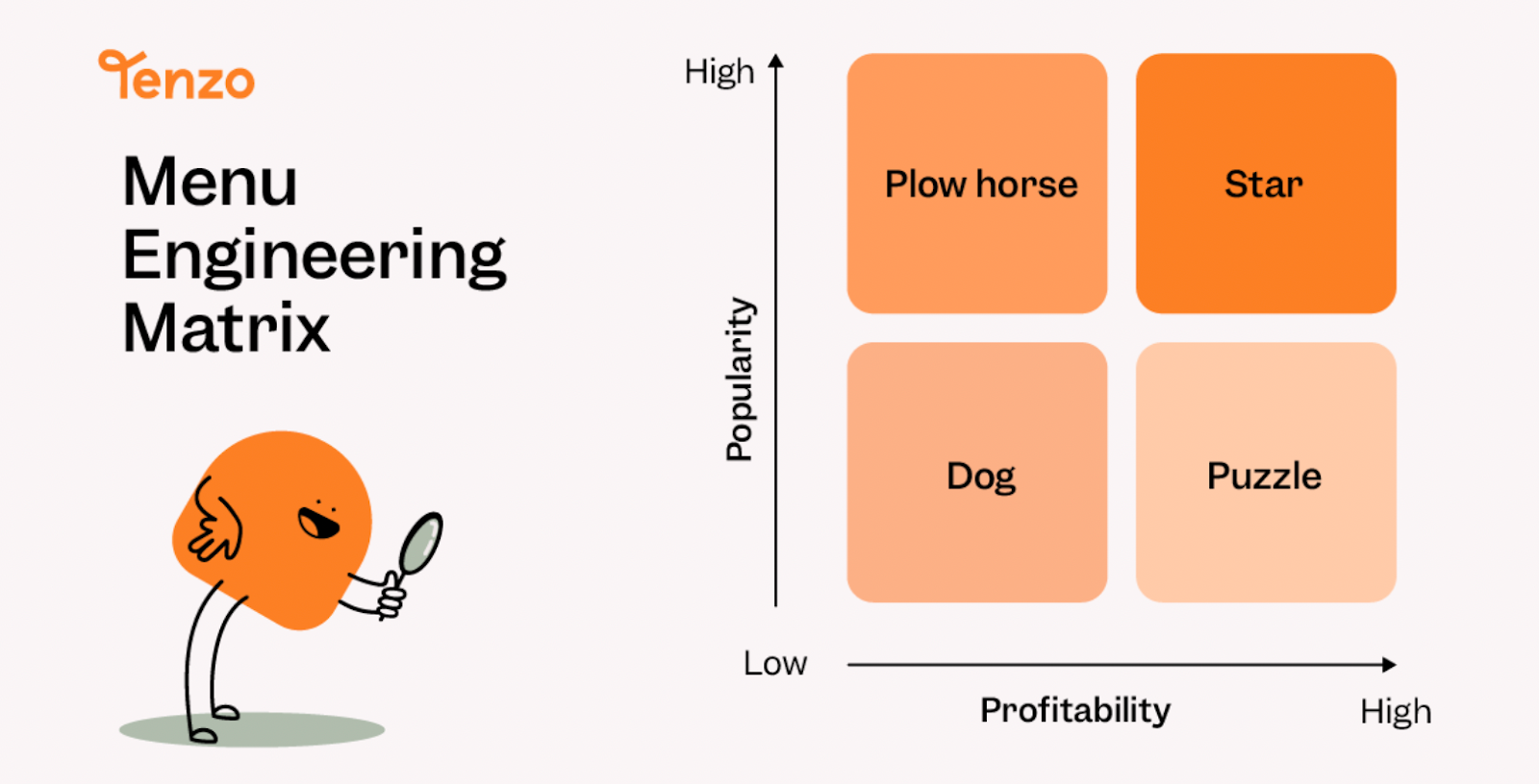 Menu engineering classifies every dish into one of four categories, based on where it sits on the profitability vs. popularity matrix.
